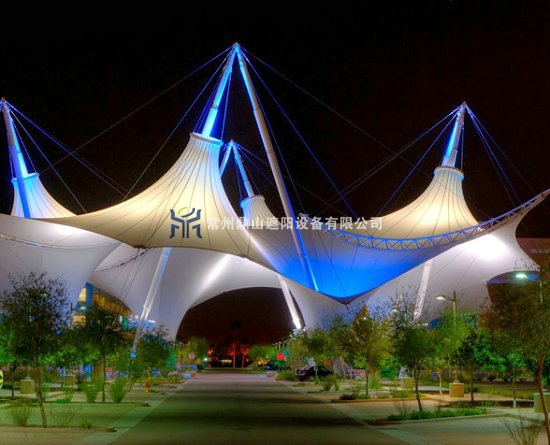 作为一种柔性新型材料,其在建筑上的造型变化多端,是其它材料所不能比拟的,因此也造就了膜结构多变的特性,充分体现出建筑形体塑造力和轻盈、飘逸的动感曲线外观。