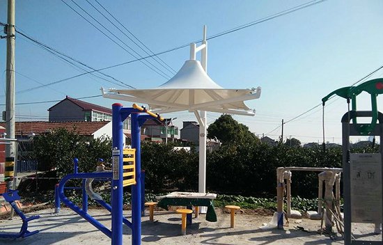 膜结构是由多种薄膜材料组成的,有PTFE膜材、ETFE膜材、PDFE膜材、PVC膜材等,涂PTFE具有较好的隔热效果,可以反射70%的太阳热能,不受紫外线影响,隔热效果甚好,膜结构遮阳伞为你在夏日炎炎中撑起一片凉爽的小地方;在自洁性也有着其传统建筑所没有的优势,而在使用寿命上,更是达到15年以上,让你无需担忧。